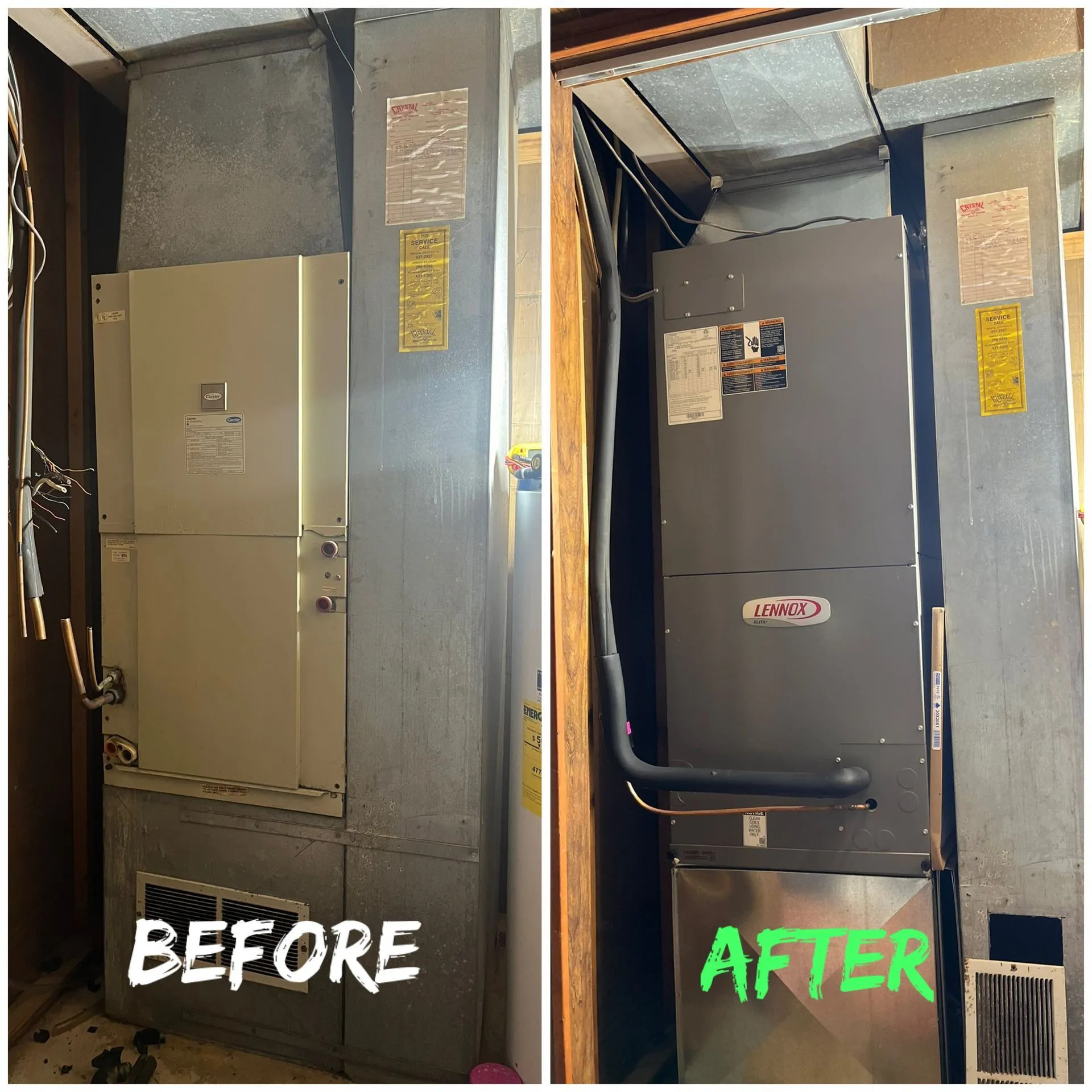One customer took advantage of the Spring promotion and upgraded her HVAC system. The 35 year old furnace and air conditioner were massive! Unfortunately, they were very inefficient at 60%…